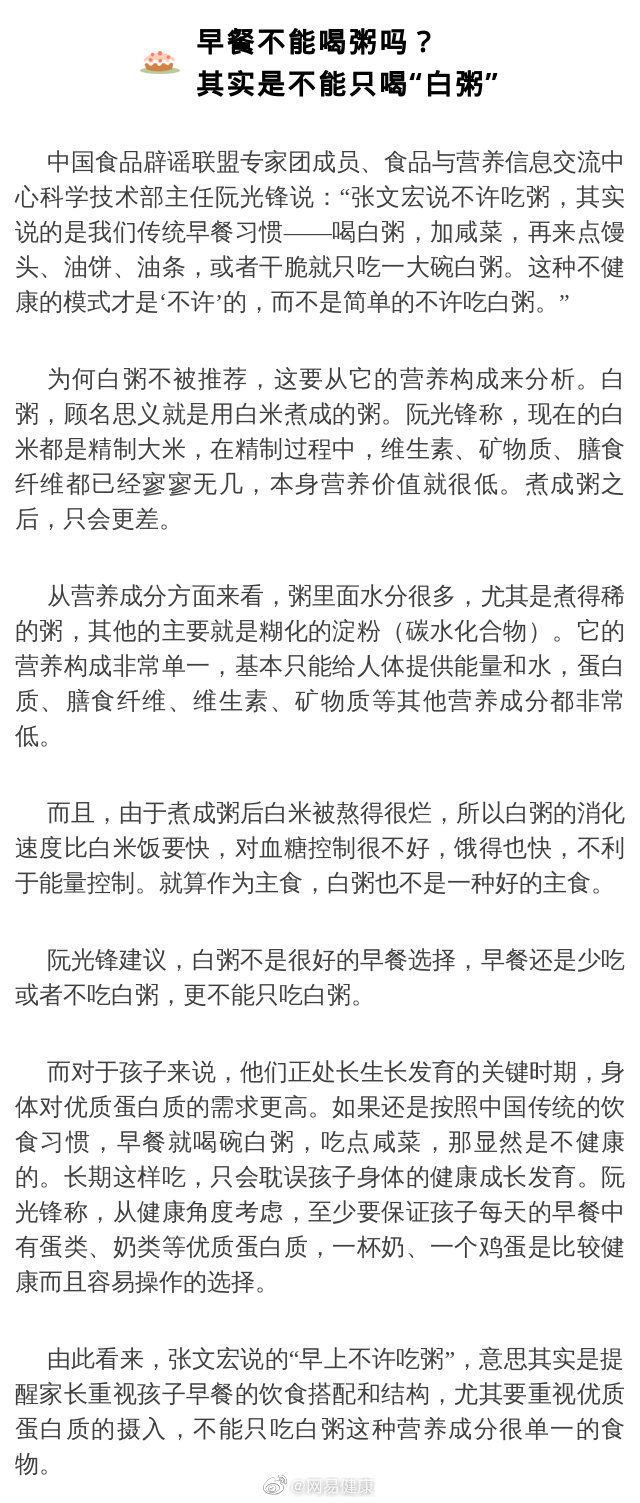 近日,張文宏醫(yī)生“早上不許吃粥”的視頻在網(wǎng)上引起了熱議。早餐吃粥是很多中國人的傳統(tǒng)飲食習(xí)慣,而張文宏的觀點(diǎn)讓很多人“手里的粥一下子不香了”。粥到底有什么問題?疫情期間,喝粥會不會導(dǎo)致營養(yǎng)不夠?早餐究竟應(yīng)該怎么吃才好?